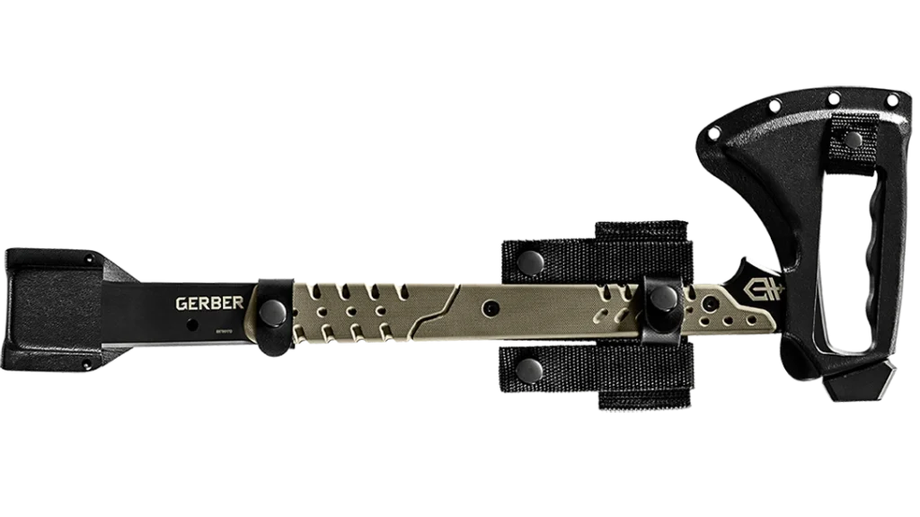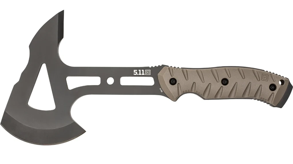 No matter if you’re hacking through a wooden door, smashing through a plate glass window, or piercing layers of aluminum with its no-nonsense spike, the Peacemaker dishes out damage like a beast. Its full tang construction and textured sure-grip handle, helps you maximize your power with every swing. This triple-delivering hawk offers hack and slash, pommel-crushing, and puncturing penetration to anything standing in its way. The tomahawk comes complete with a protective sheath and four-position belt/MOLLE clip. When you need a heavy-field-use tool that won’t let you down, then look no further than the Peacemaker.