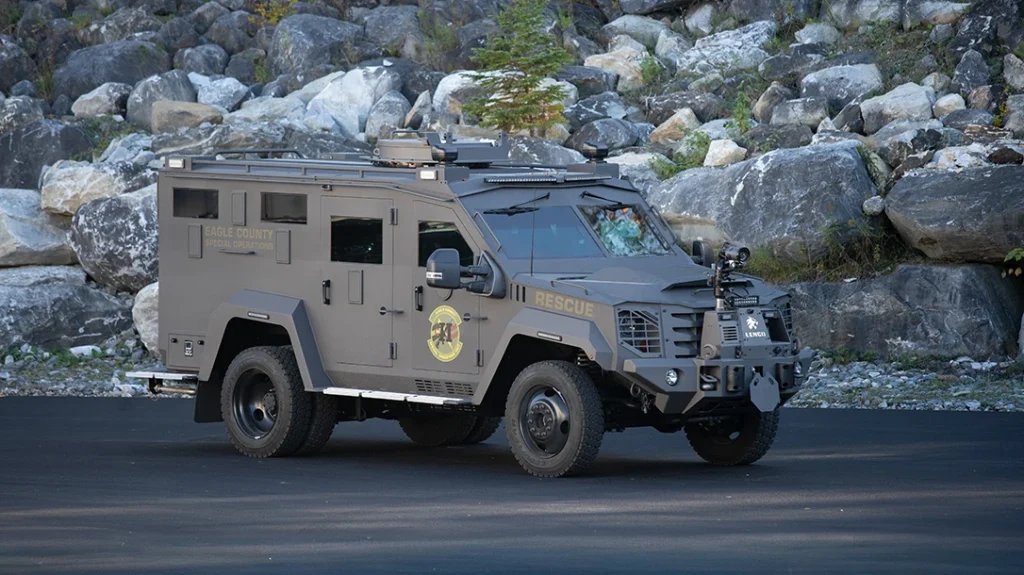 The four-door BearCat G2 is built around Lenco’s signature hydraulic breaching system, allowing operators to swap in a growing arsenal of tactical and response attachments. The Avon, Colorado Police Department’s new BearCat, for example, includes Lenco’s standard breaching plate, a non-lethal munitions launcher, and a four-way video and audio reconnaissance attachment. Together, these tools let officers manage critical incidents from within the protection of the vehicle. Keeping personnel safer while maintaining full operational control.