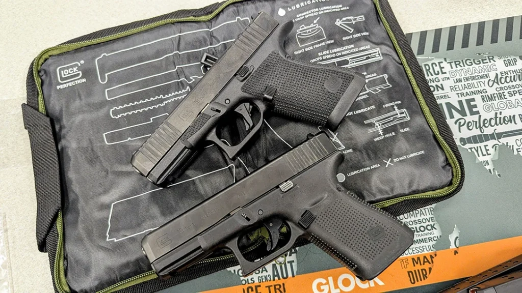The meat and potatoes are what you’re here for, right? Let’s dig into it. The Glock Gen 6 will premiere with three models for the American market. We have the classic Glock 17, the fan favorite Glock 19, and the cult favorite, the Glock 45. This will be the initial rollout, and what guns are coming next in terms of models and calibers wasn’t up for discussion just yet.