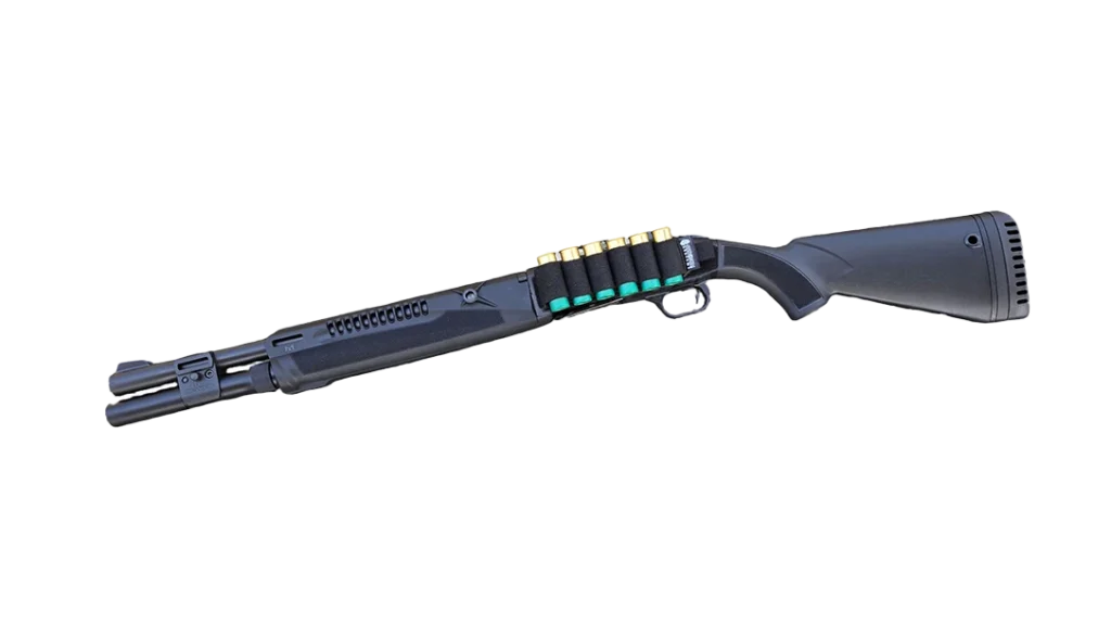 The new forend is a big step up from my 930’s functional, but Spartan forend. It includes an integrated heat shield, two QD sling swivel cups, and three M-Lok mounting slots at the 3, 6, and 9 o’clock positions. It’s finished with Mossberg’s signature texturing for improved handling in adverse weather or when under stress. A Vang Comp 6-shotshell carrier with a hook-and-loop card attachment system adds handy ammo accessibility, without having to add any aftermarket parts or cost.