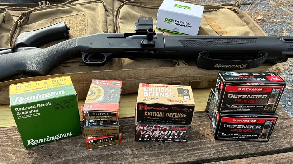 I tested my Mossberg 990 AfterShock SBS with Hornady American Gunner Reduced Recoil and Critical Defense 00 buckshotloads. I also included Hornady Varmint Express #4 buckshot, Remington Ultimate Defense #4 buckshot, Remington LE 00, Federal Premium LE133 FliteControl and Federal  #4 buckshot.