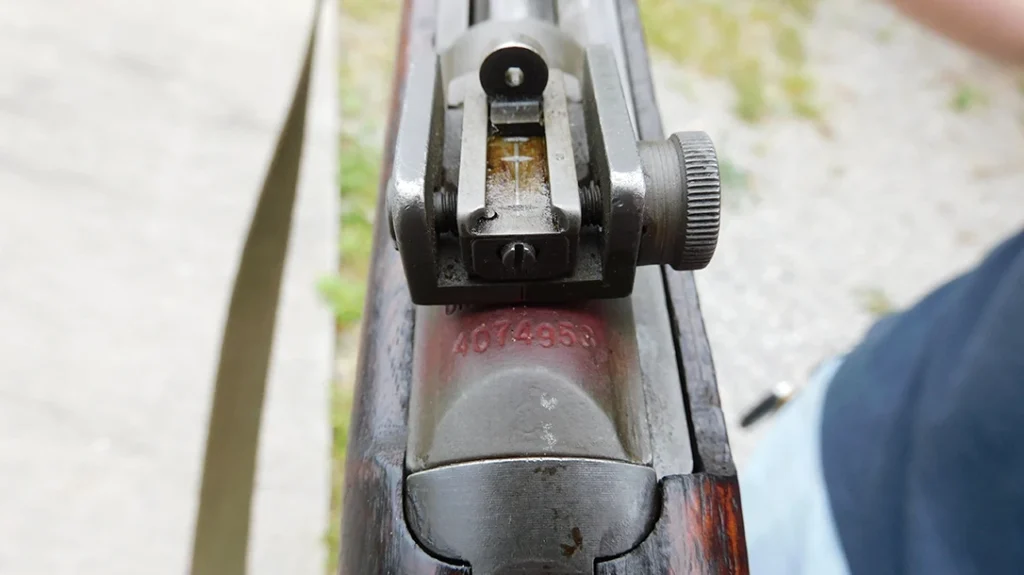 The result was a mix of features on different rifles based on parts availability. The Carbine’s bolt, rear sights, barrel band, and stock were changed during the war, but stockpiles of one part might run out before others. That means that individual examples might have some updated parts but not others. This, combined with the plethora of manufacturers, makes the Carbine very collectable.