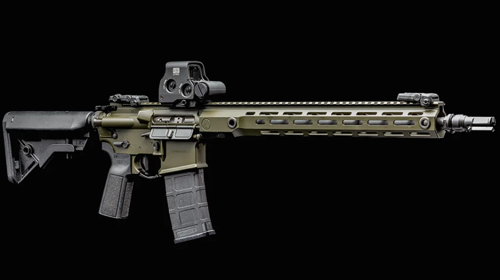 If the Standard Issue is the dependable workhorse, the Special Duty RAIDER15 is built for environments where equipment gets pushed hard and excuses don’t fly. This model features a 16-inch chrome-lined 416 stainless steel barrel for extended service life and consistent accuracy under sustained use. A Geissele non-adjustable combat trigger anchors the fire control group, delivering the kind of reliability professionals expect.